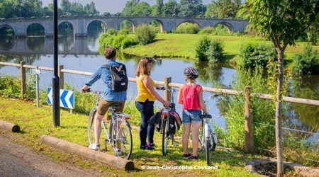 Vous avez adoré votre escale dans le sud Touraine mais n’avez pas eu le temps de tout voir ? Pas d’inquiétude ! Nous vous proposons de poursuivre votre périple au cœur des Deux-Sèvres (à 45 kms de Chinon), et de poser votre campement au camping Le Clos Imbert, aux portes de l’historique ville de Thouars (80 kms depuis le camping). Ce camping à taille humaine situé entre falaises et rivière, vous accueille dans un cadre très arboré où il fait bon venir faire du camping, en emplacement de camping ou en hébergement famille ou duo. Accessible par la voie cyclable « Vélo Francette », le camping est entièrement adapté pour recevoir nos campeurs à vélo ! Alors, prêt à reprendre la route ? C’est parti !